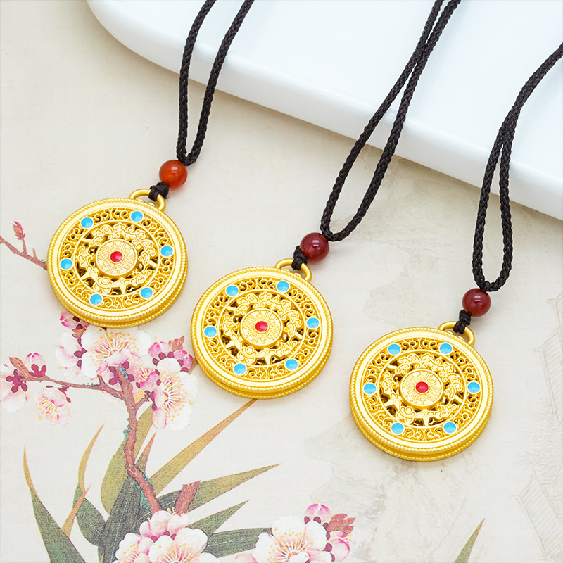 模造法金沙金透かし五福円満ネックレス金店同型復古滴油ペンダントdiyアクセサリーペンダント