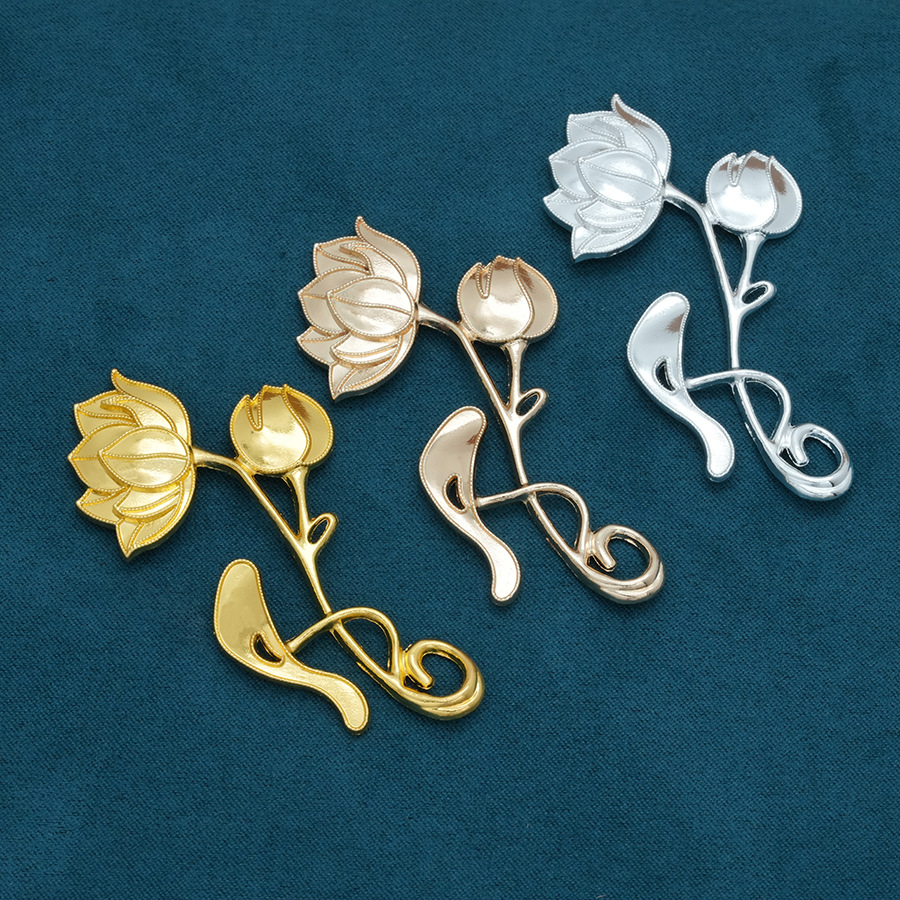 古風アクセサリーdiy合金ハスの花蕾点翠底胚72*35mmヘアピン冠面材料