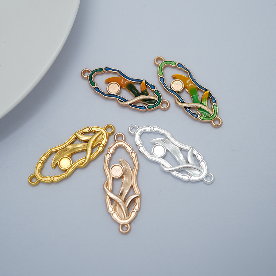 合金電気泳動高保両面滴油双吊小型すずらんdiy点翠滴油胎底古風ヘアピン部品