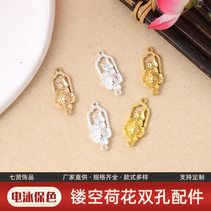 漢服の透かし彫りのハスの花の双穴の窓のチャイナドレスの古風のdiyのアクセサリの襟の合金のアパレルの部品のかんざしの材料