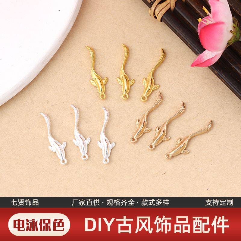 古風DIYアクセサリーアクセサリーレトロ合金三色オプションメッキ小魚ストラップシンプルアクセサリーメーカー卸売り