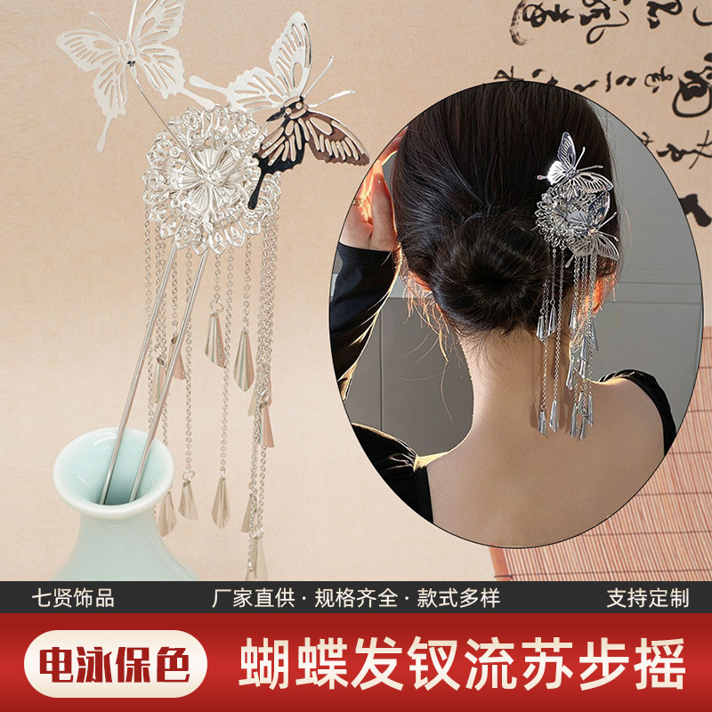 新中国式古風ヘアピン高級感蝶ヘアピン歩行苗銀髪飾り漢服流蘇女アクセサリーヘアピン
