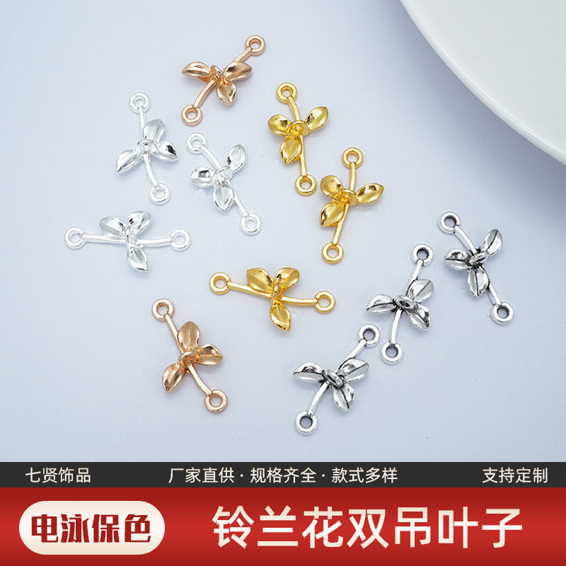個性的なdiyアクセサリーの合金の漆の鈴の蘭の双吊の葉のイヤリングのネックレスのペンダントの髪飾りの材料