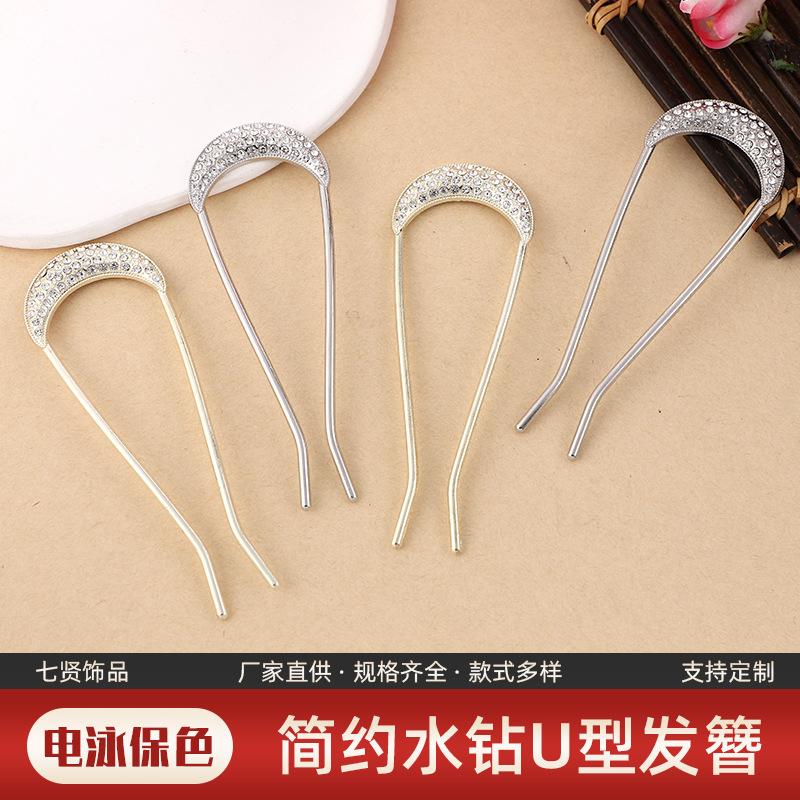 新商品の高級感のあるドリルu型のかんざしの女性のアクセサリーの後頭部の団子の頭は神器を挿してシンプルな髪飾りをします。