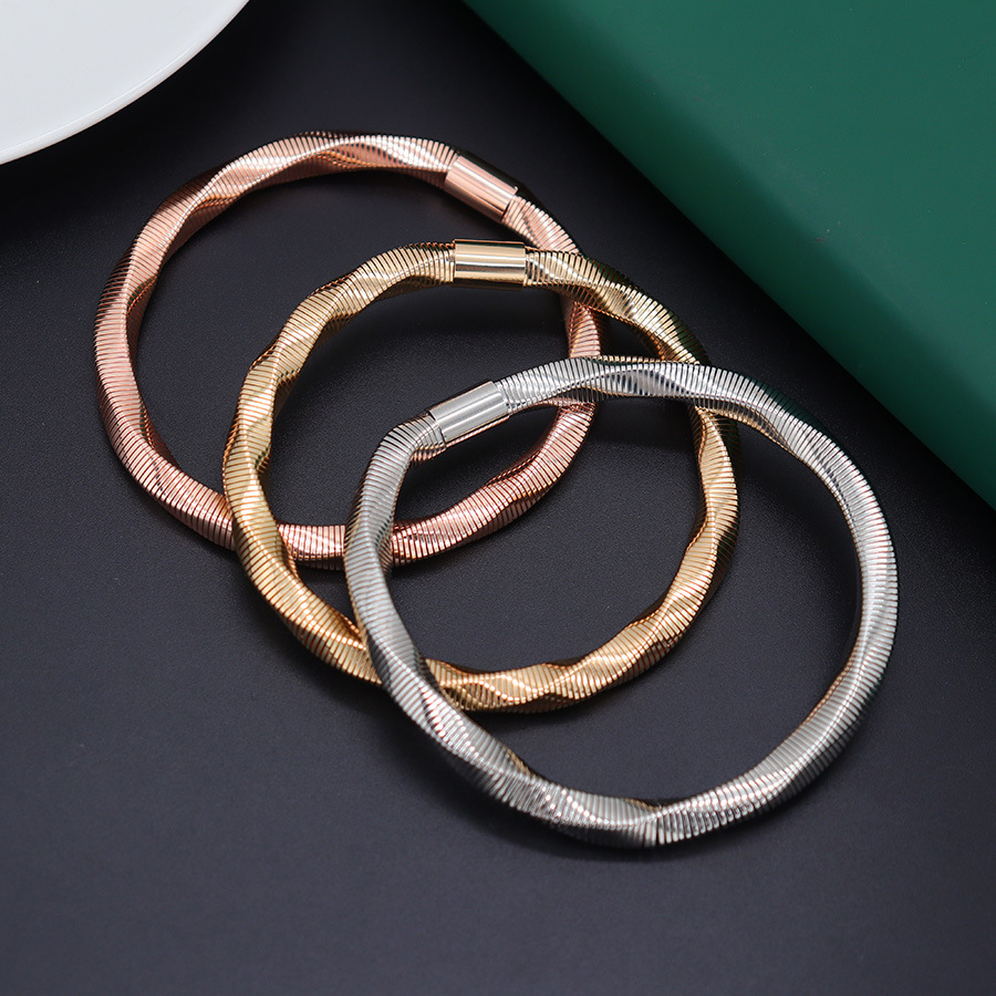 欧米の国境を越えて人気のある麻花巻きスパイラル鉄製の手環ins風小衆金属感シンプルなファッションアクセサリー