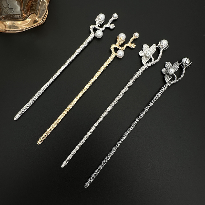 2023新作古風高級感かんざしイチョウ葉真珠盤髪かんざし梅真珠古着漢服頭飾り
