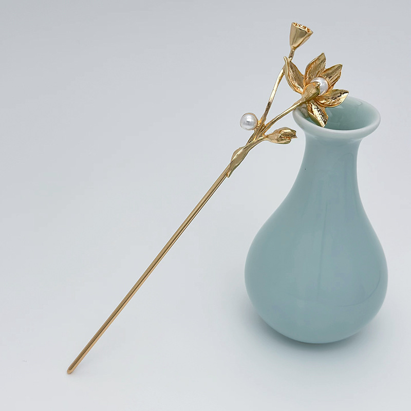 新中国式の合金の蓮の花のかんざしの古風な漢服の頭飾りの蓮の葉のヘアピンの気質が優雅で、一字の髪飾りの女性です。