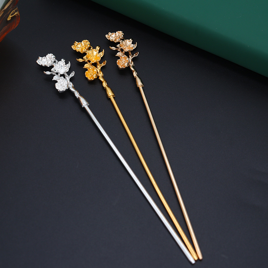 十二花神発桃花かんざしdiy古風漢服頭飾り合金発かんざし宮廷流蘇歩揺電気泳動電気めっき