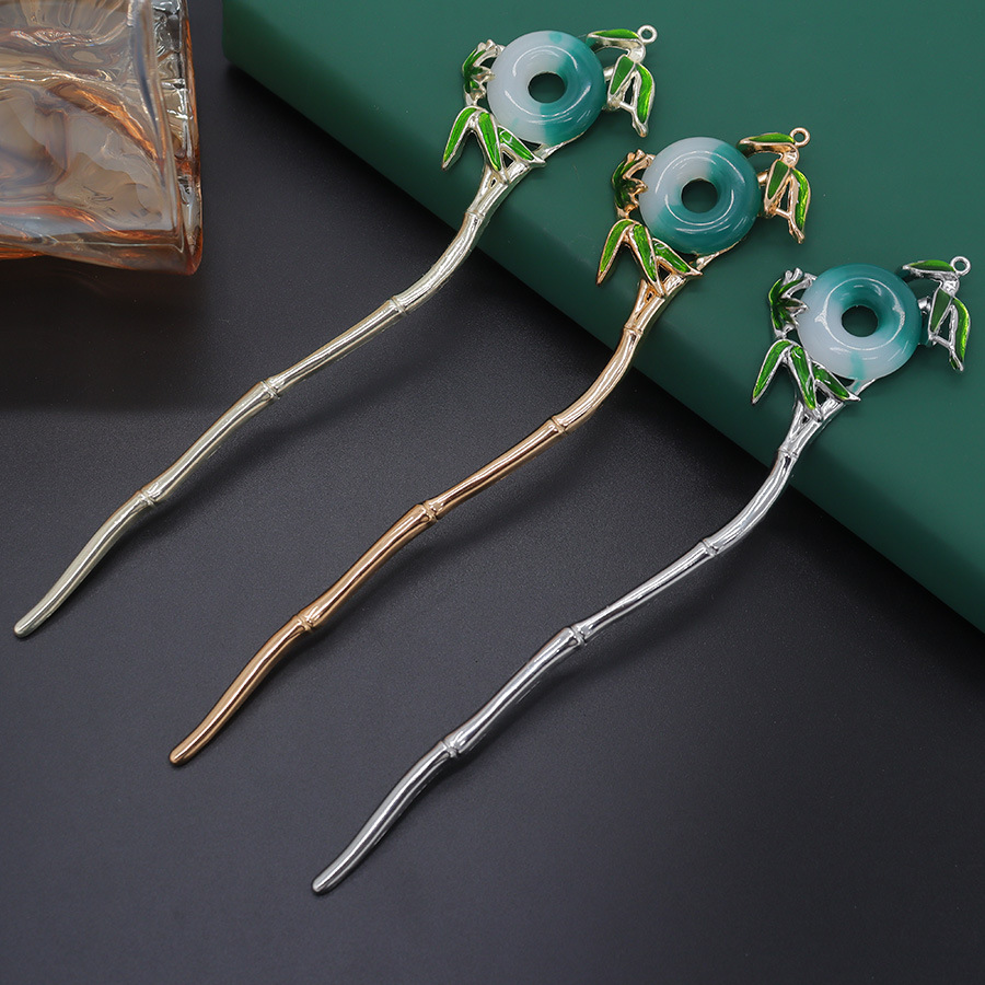 中国式盤髪日常国風ヘアピン緑竹節古風漢服チャイナドレスヘアピン女2023年ホットモデル