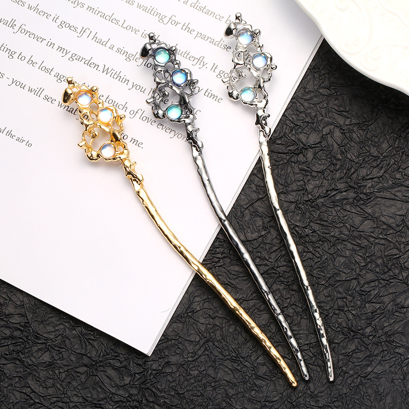 新中国式月光石金属ヘアピン個性レトロ髪飾り百合漢服アクセサリーヘアピン卸売り