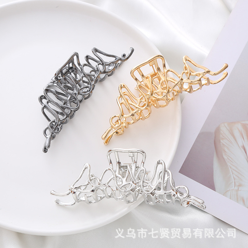 ファッションネット赤ins不規則なデザインの透かし彫りクリップ夏の新商品の贅沢なデザイン感の後頭部サメクリップ