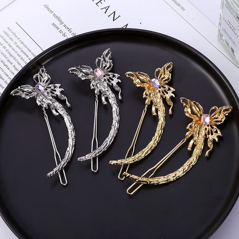 ダイヤモンドの液体の金属の蝶のかんざしの気質を入れて冷淡な風のかんざしを出します。