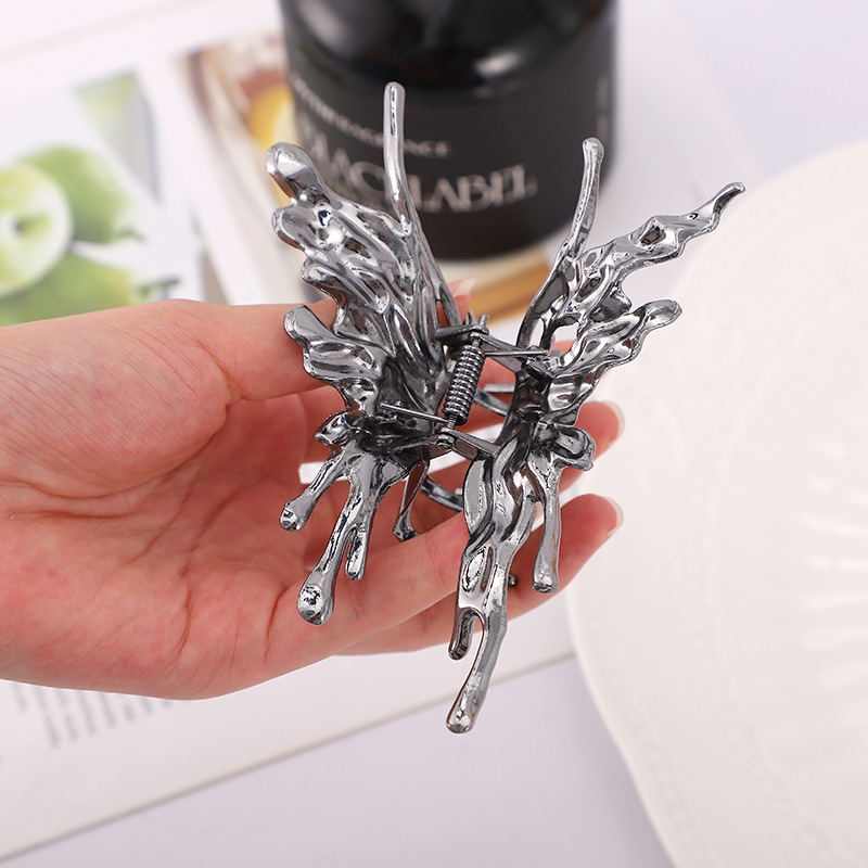 金属の液体の蝶のヘアピンの韓国系の新型の大きいサイズの皿はサメを出して透かしを彫って百合の後頭部を挟んで卸売りします。