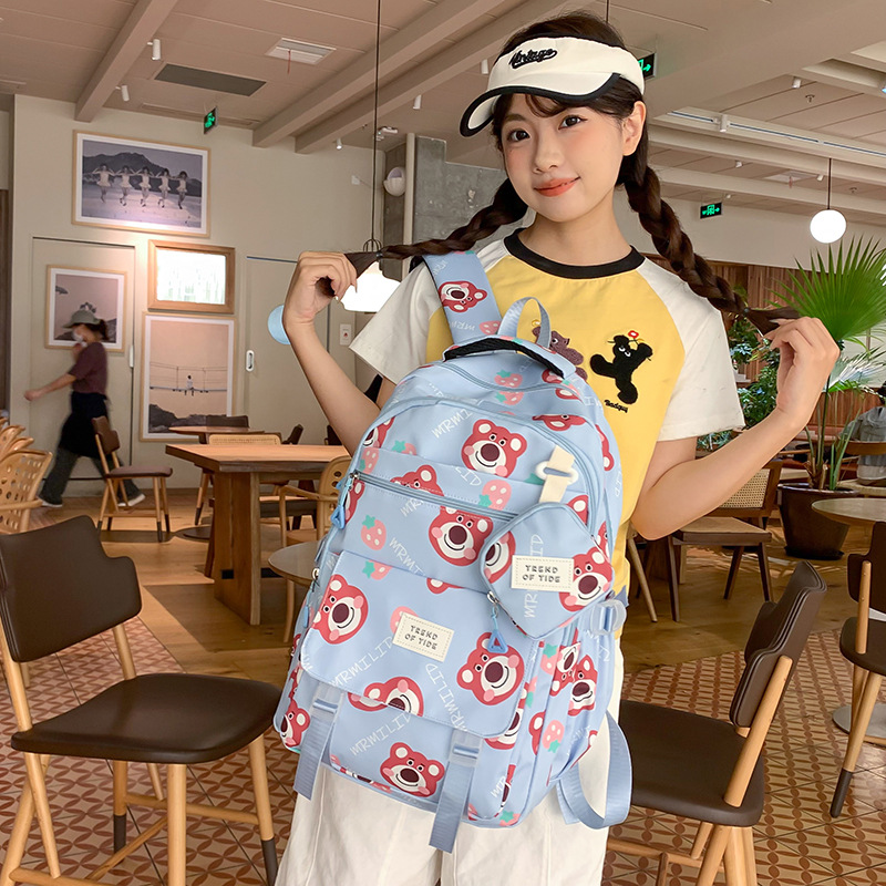 2024新品大容量原宿インスタ风ファッション潮挂けいちごくまプリント初高校生徒リュックリュックサック