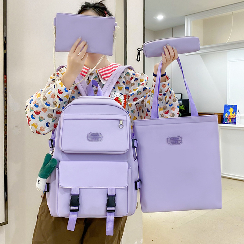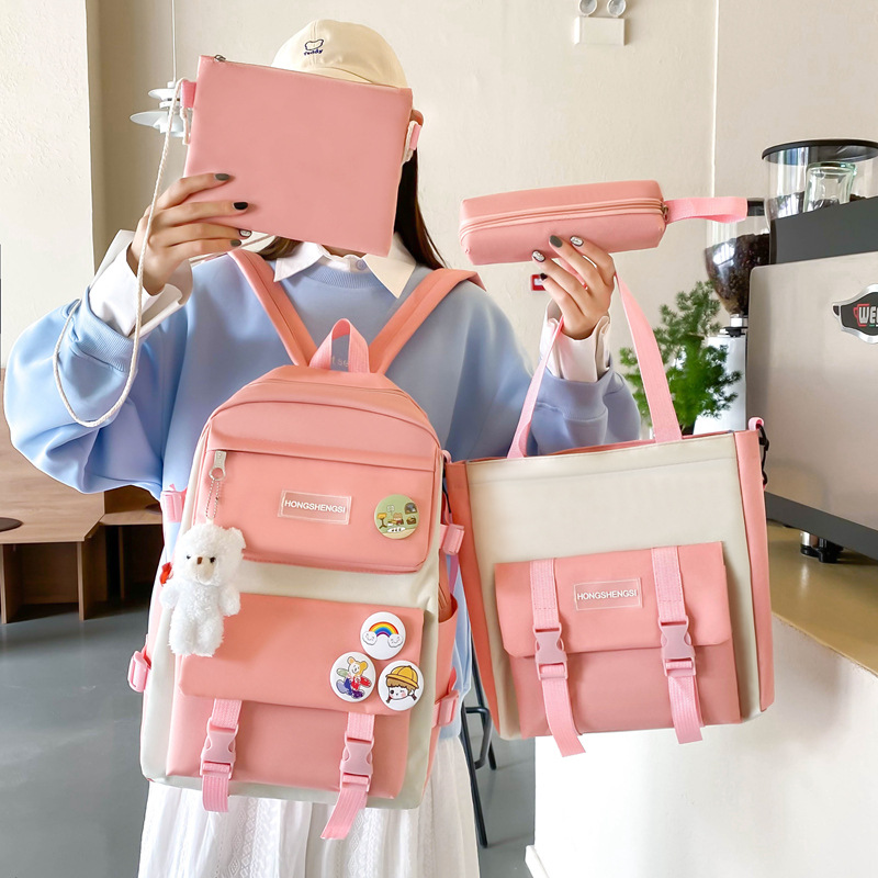 入学シーズンの新型学生四点セットのかばんの小清新な衝突色の大容量カジュアル軽快学院風補習バッグ