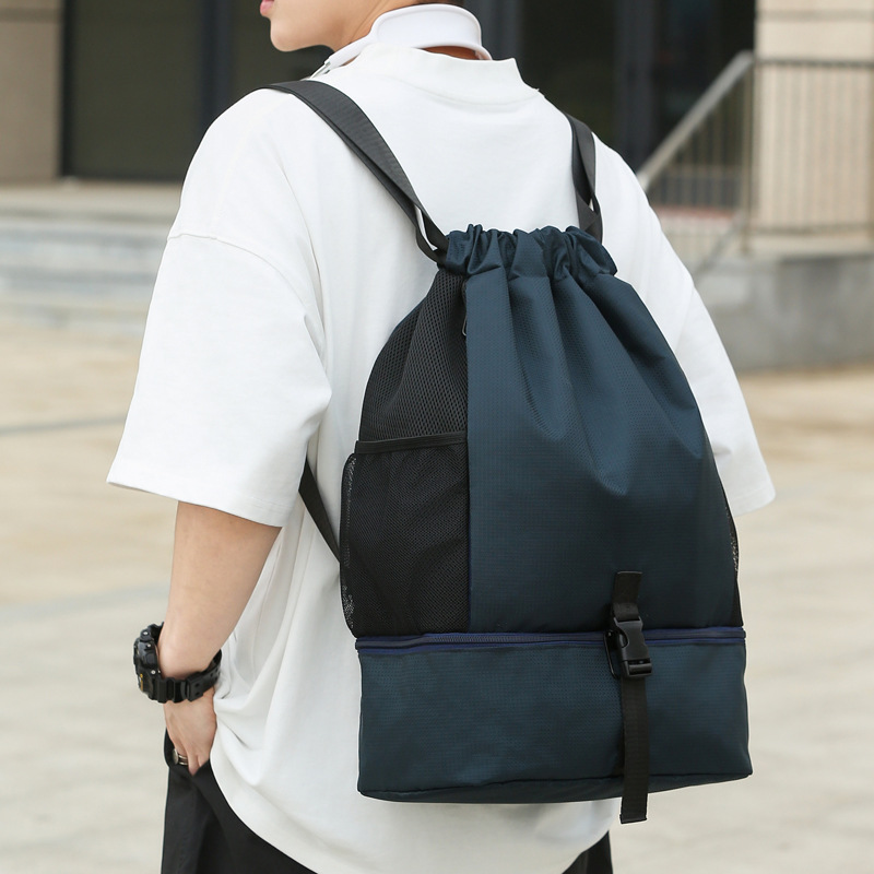 新型束口包男性大容量運動双肩包フィットネス収納包乾湿分離独立靴倉ヨガバッグ