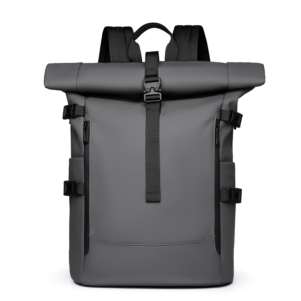 トレンディでシンプルなメンズバックパックロールトップバックルカジュアルコンピュータバックパック大容量通勤通学学生スクールバッグ