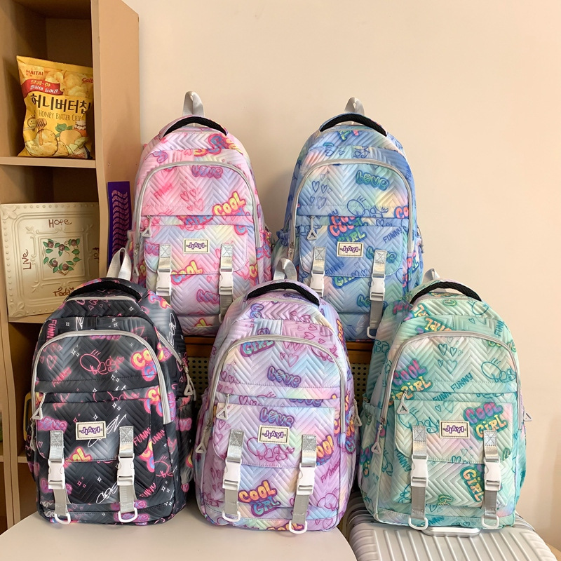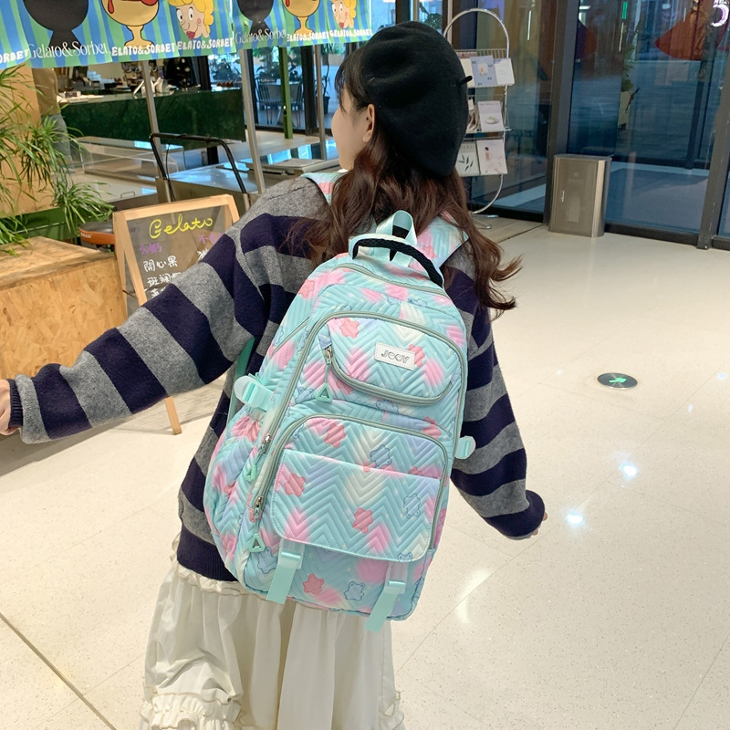 早春新作ファッションレインボーぼかしエンボスリュック小学生中高生カバン大学生パソコンバッグ