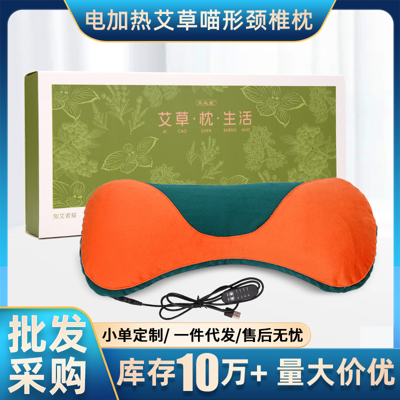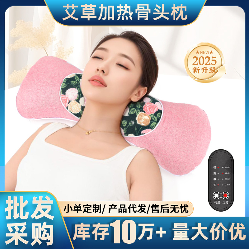 新型ピンク電気加熱艾草枕頚椎枕家庭用艾灸熱敷睡眠理学療法保護首円柱枕