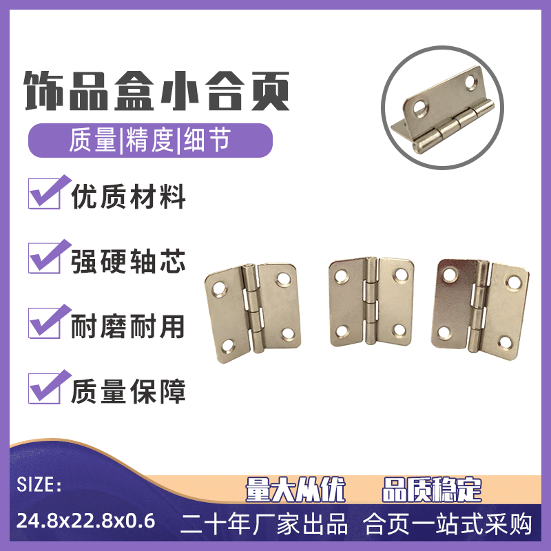 メーカースポット1インチ鉄メッキニッケル平開ヒンジ鉄メッキ黒亜鉛ミニ合葉木箱ヒンジ24*22*0.6