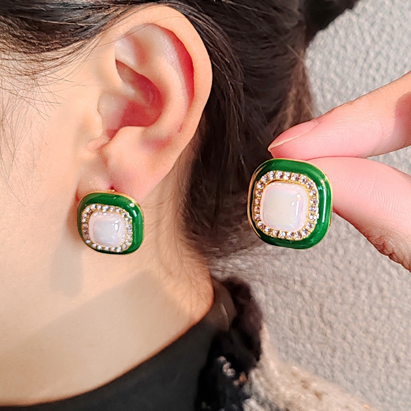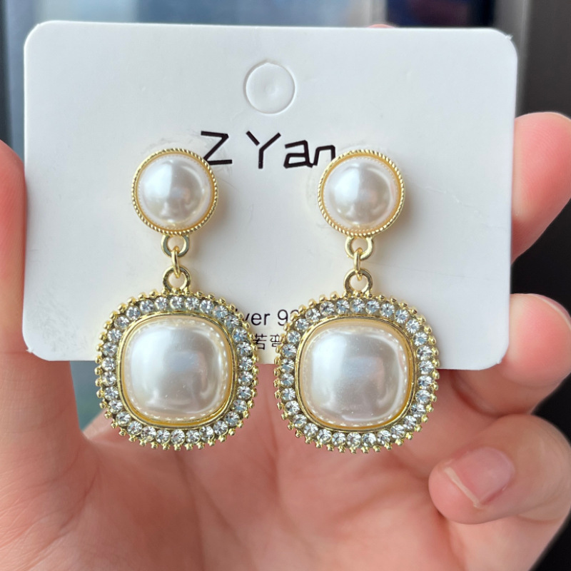 クロスボーダー専用正方形ジルコン真珠イヤリング女性大衆高級感夏ピアスアクセサリー現物卸売り