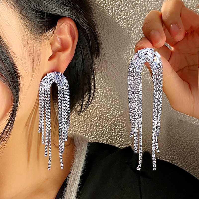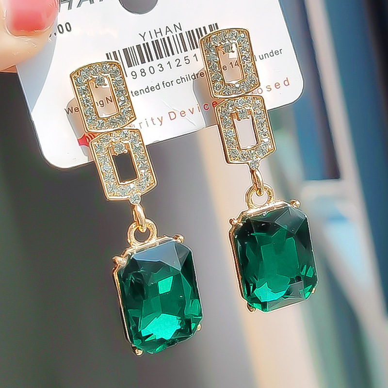 香港風レトロs925銀針の長いタイプのダイヤモンドの宝石のイヤリングの日常のシンプルな四角形のイヤリングのイヤリングの女性
