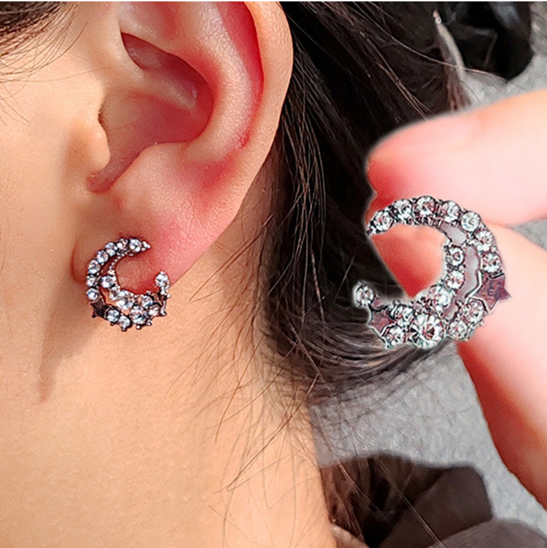 越境月満ドリル耳飾り女性銀針気質高級感大衆デザイン感ピアスアクセサリー卸売り