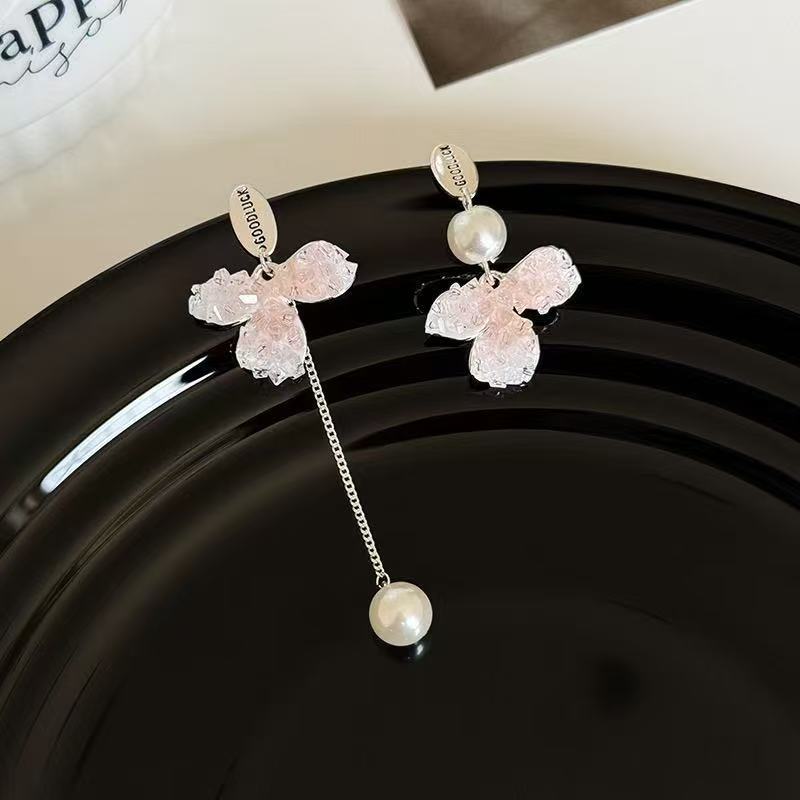 ライトラグジュアリーハイエンドクリスタルペタルパール不規則イヤリングレディースファッションABスタイル多用途タッセルイヤリング