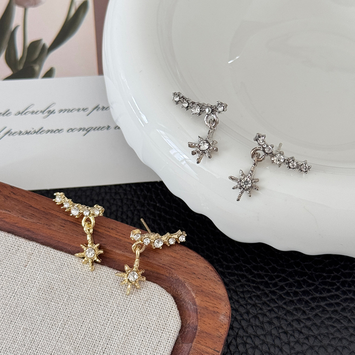 女性用の輝くダイヤモンドスターバーストスノーフレークペンダントイヤリング、ハイエンドニッチインデザインイヤリング、ファッショナブルで多用途なイヤリング