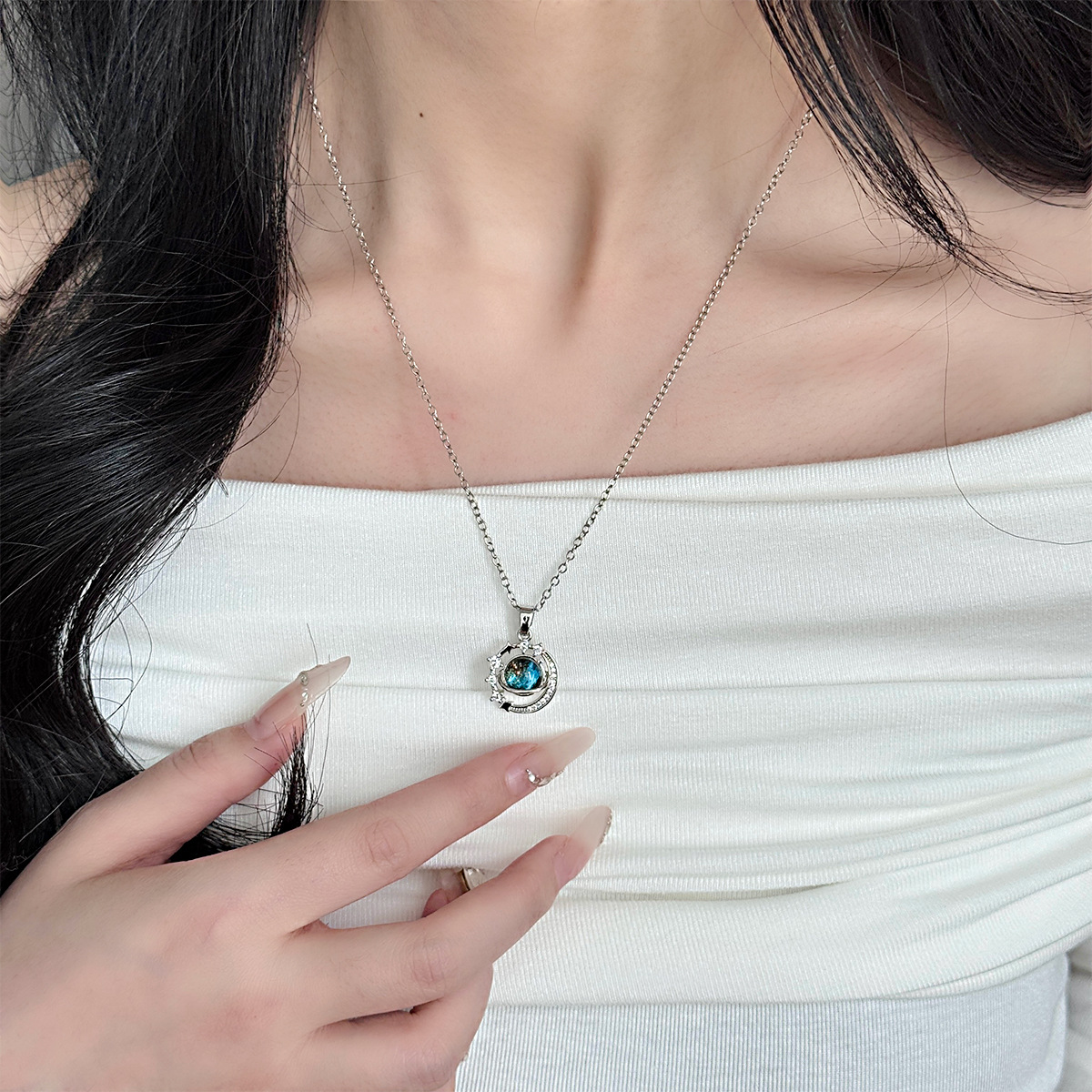 シンプルなマイクロダイヤモンドネックレス、星空惑星鎖骨ネックレス、ハイエンド、多用途、軽い高級感、ニッチなデザイン