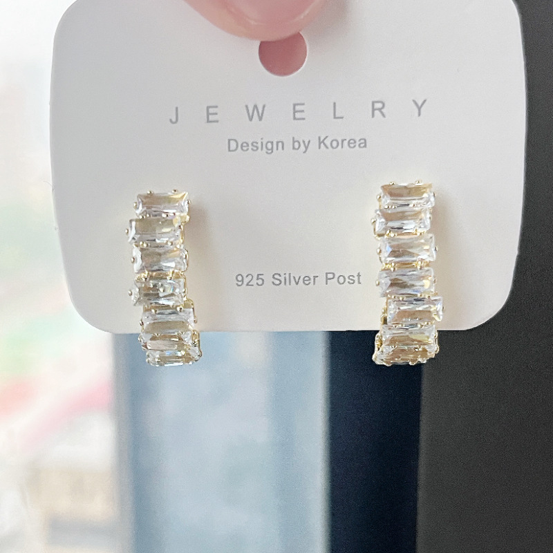 韓国の円弧の精巧なジルコンのピアスの女性の軽豪華なレトロな高級感の幾何学のイヤリングの大衆の設計の耳飾りの女性
