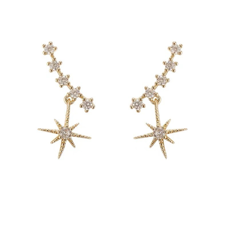 女性用イヤリング、丸顔の女性用イヤリング、女子学生用、日本語と韓国語バージョン、シンプルなレトロなベビーブレス、高級六芒星装飾