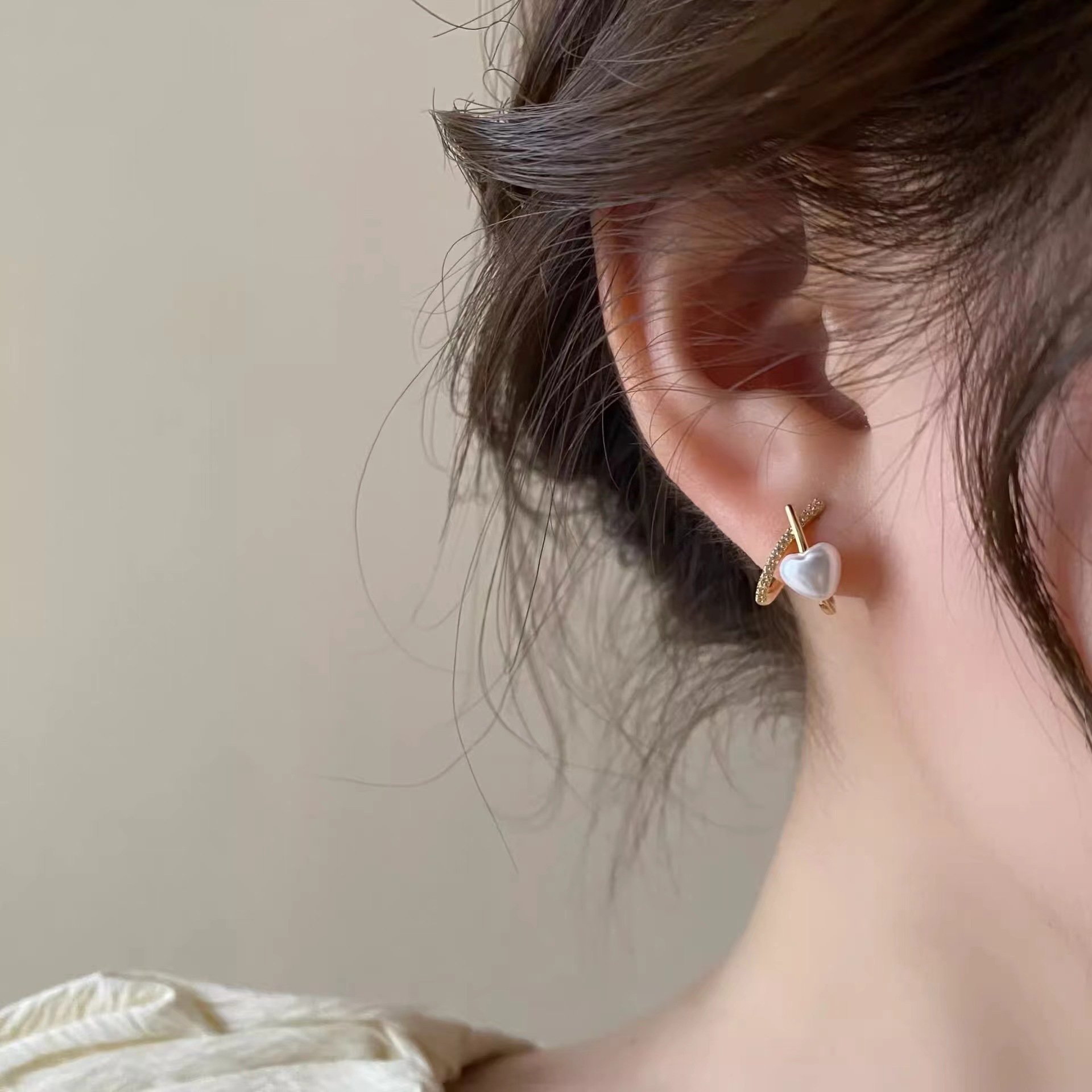 絶妙でコンパクトなクロスパールイヤリング 2025 新しい人気のラブイヤリングニッチデザインイヤリング女性用