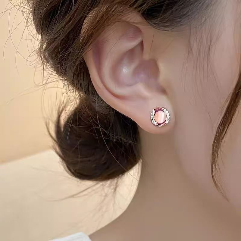 キャッツアイストーンイヤリング、エレガントなハイエンドサークル、絶妙なイヤリング、多用途の耳ピアス、シンプルな低刺激性イヤリング