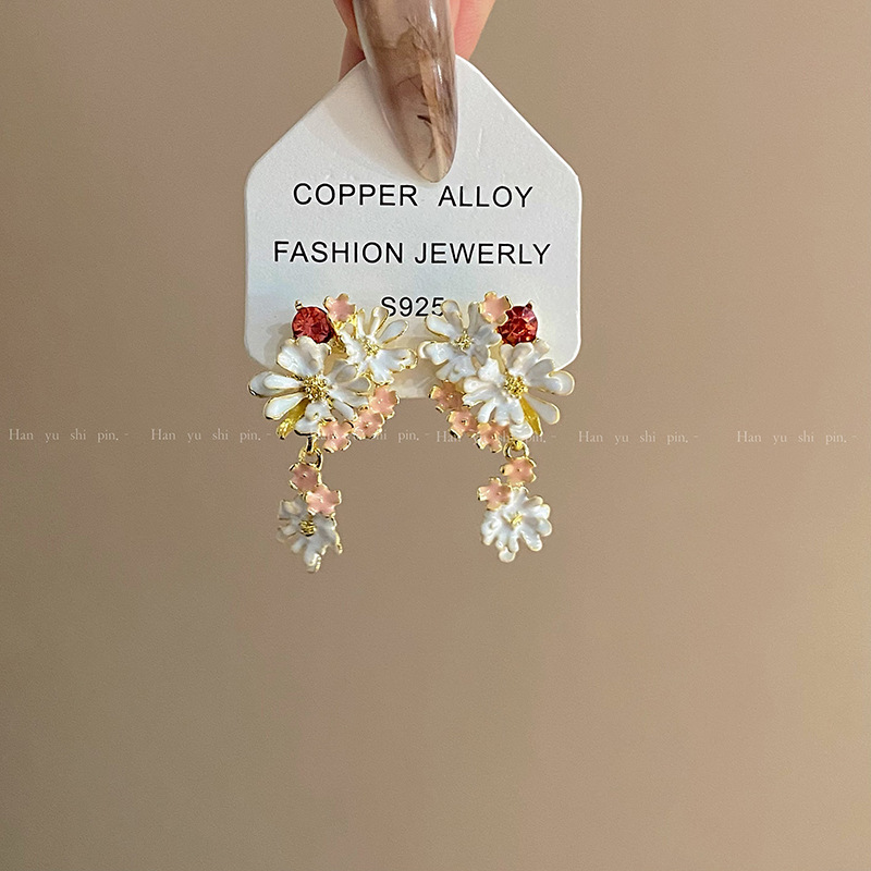 リゾート風、優しくて超妖精な気質、ロングタッセルフラワーイヤリング、小さくて爽やかで万能なネットセレブ風パールイヤリング