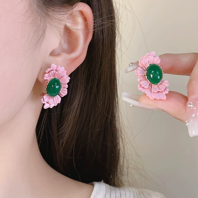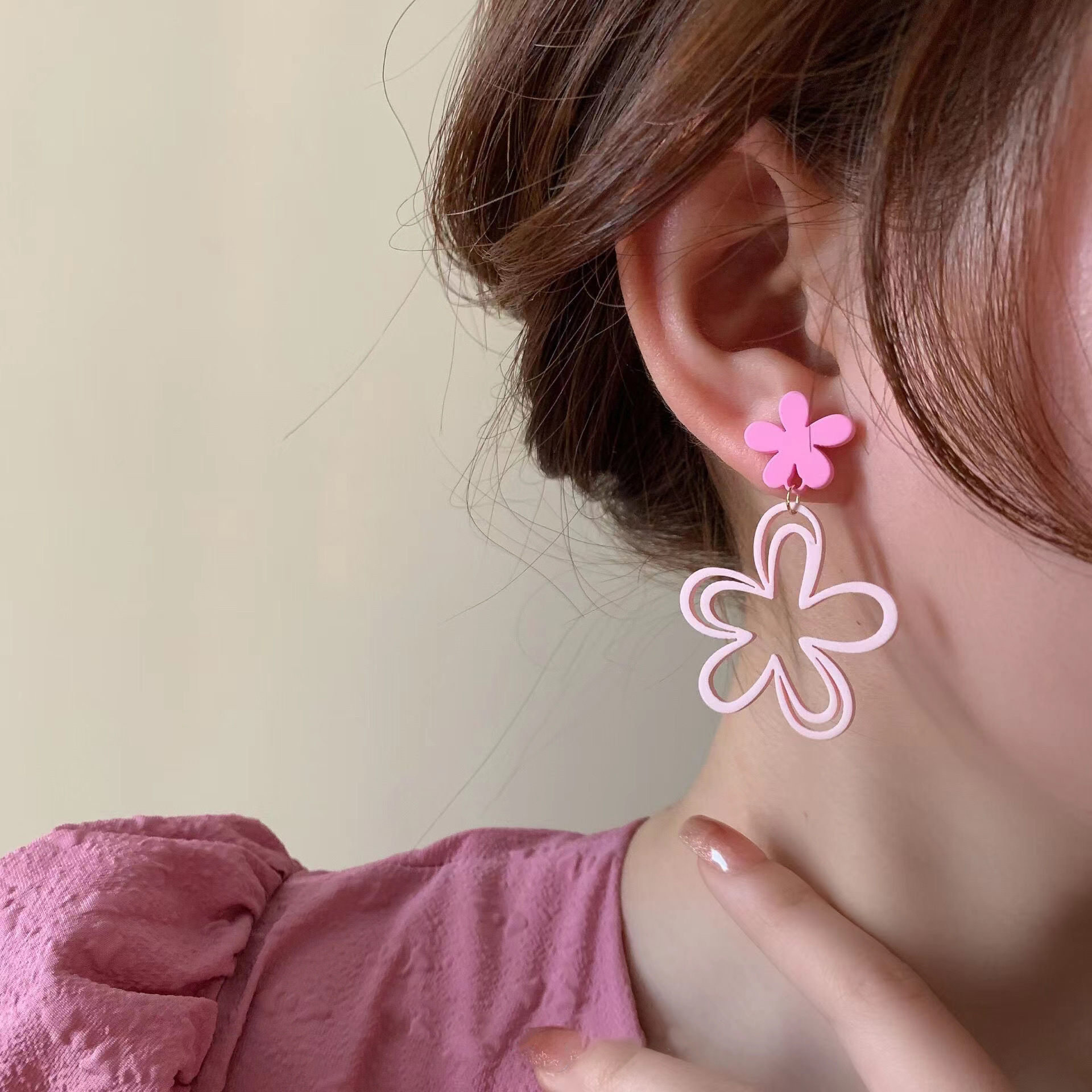 フラワーイヤリングニッチデザインフレンチデザインピンク中空新スタイル森系かわいい春夏スイートイヤリング