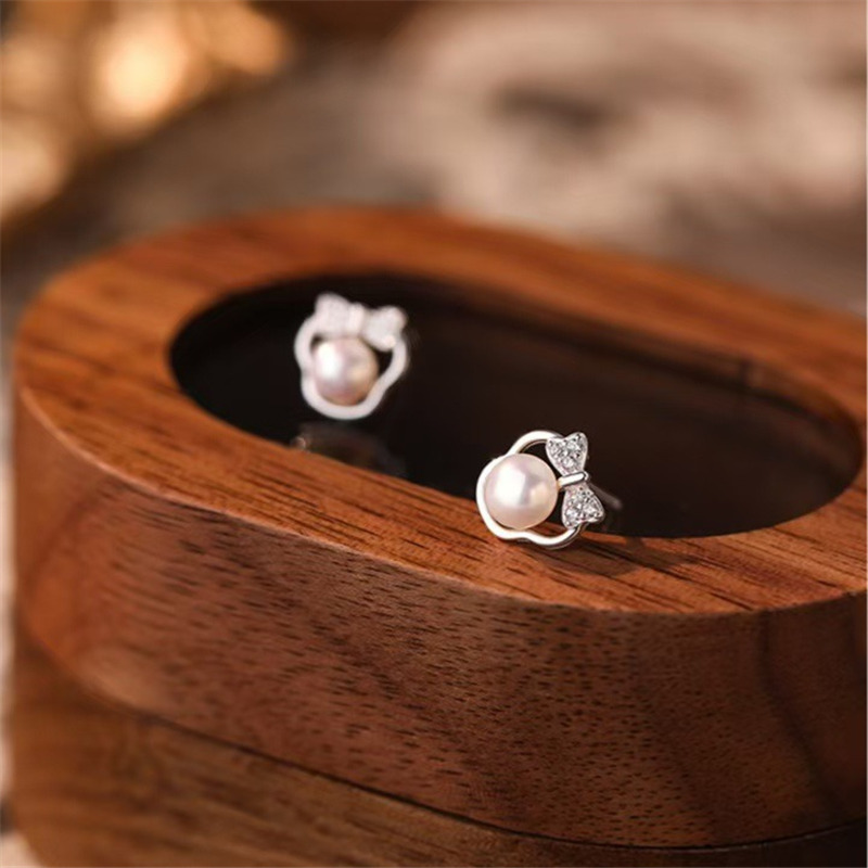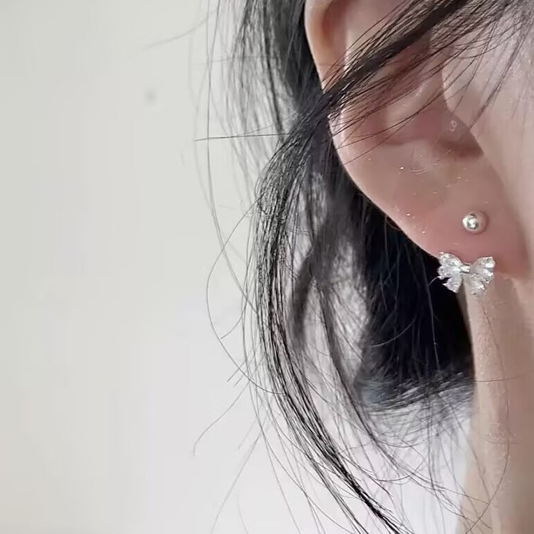 小さくて精巧なミニージルコンのピアスの甘い蝶結びの真珠の少女の心の設計のファッションの簡単で簡単な組み合わせの耳飾り