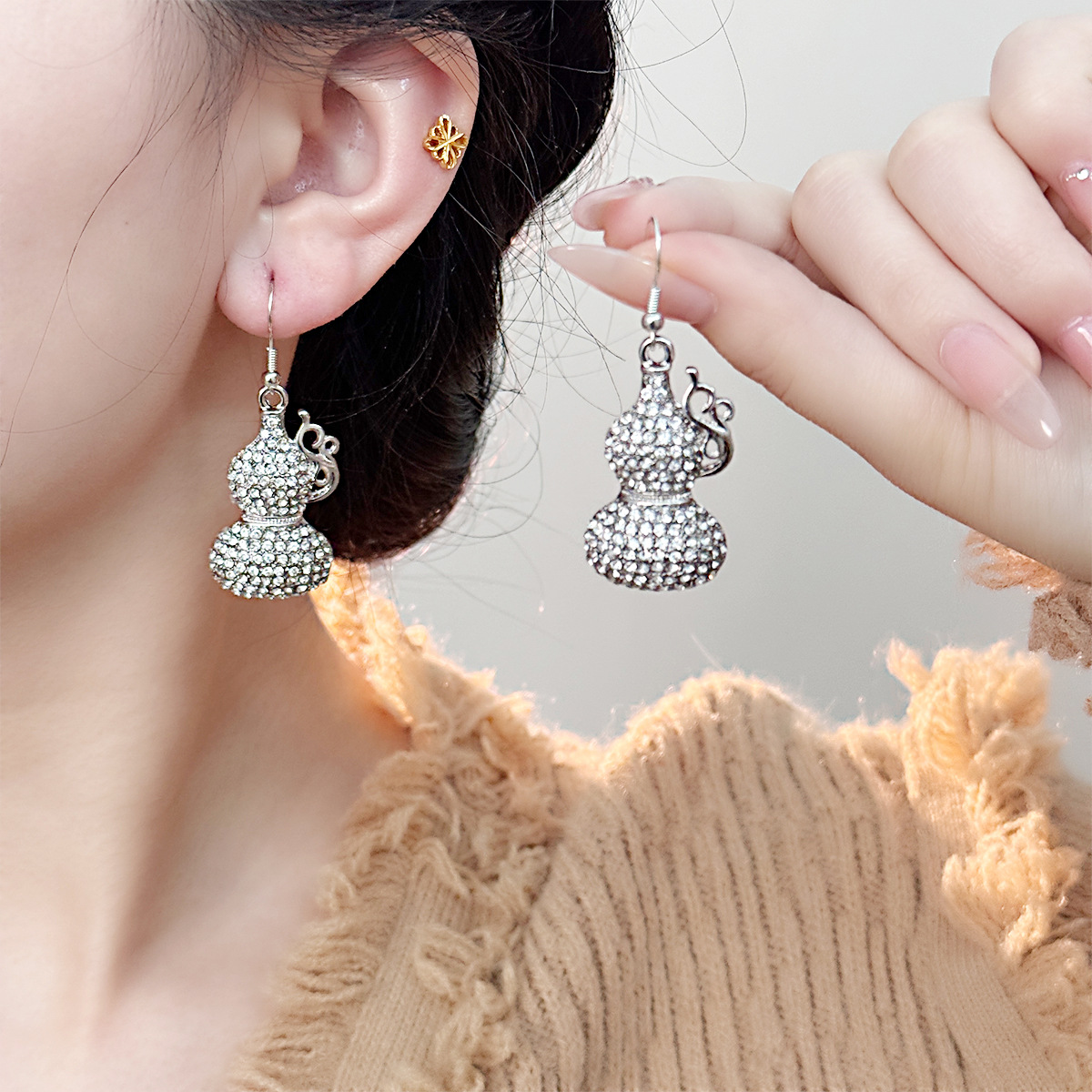 ひょうたんイヤリング、ファッショナブルでエレガントなイヤリング、軽くて豪華なフルダイヤモンドラインストーン、パーソナライズされたデザインのタッセルイヤリング