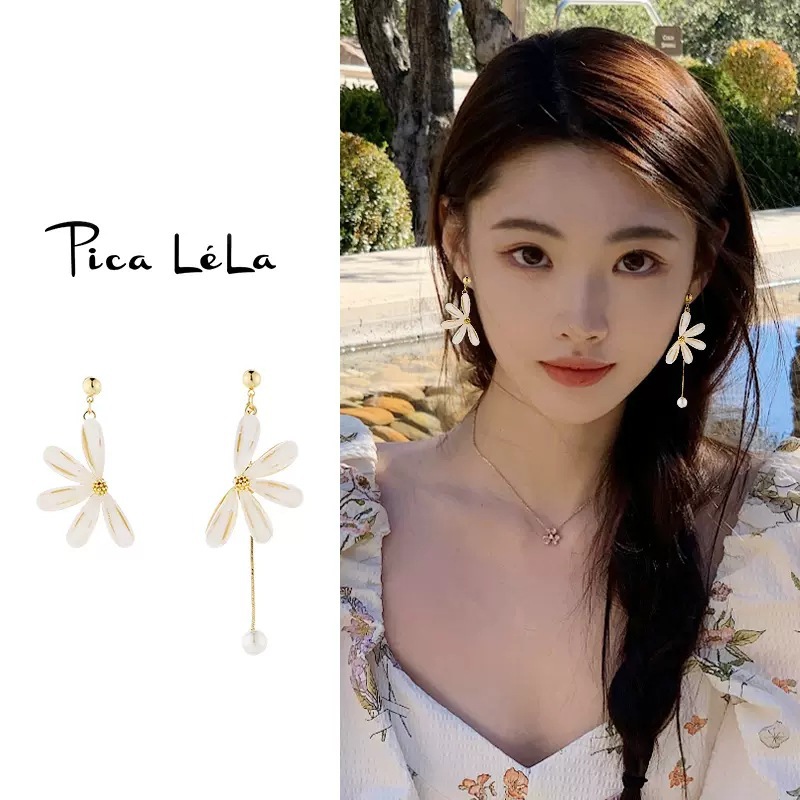 エレガントなフラワーペンダントイヤリング、誇張されたデザイン、新鮮で甘い非対称イヤリング、ロングタッセルイヤリング、イヤリング
