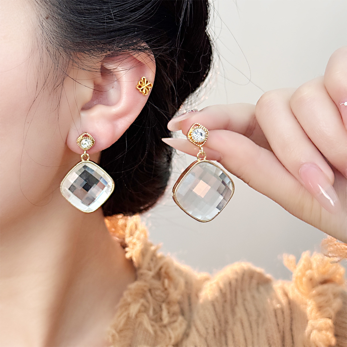 スクエア透明イヤリング韓国風シンプルスクエアイヤリングイヤリング気質シンプルニッチデザインイヤリング