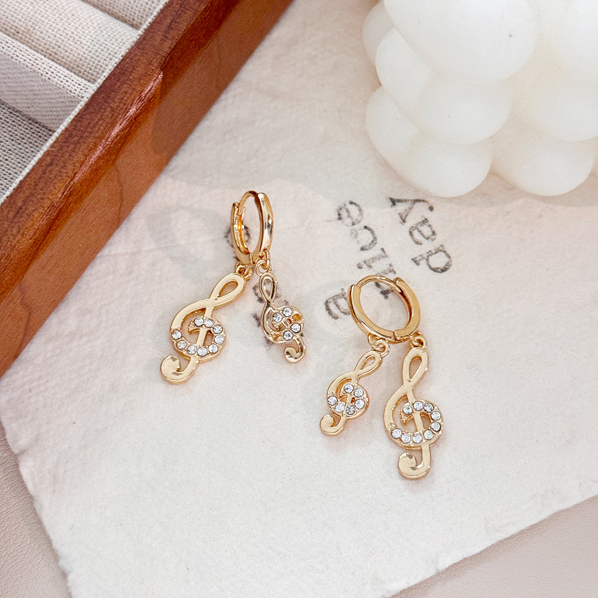 ダイヤモンドノートがちりばめられた新しい人気のイヤリング、学生や女の子向けの非対称イヤリング、パーソナライズされた音楽シンボルジュエリー