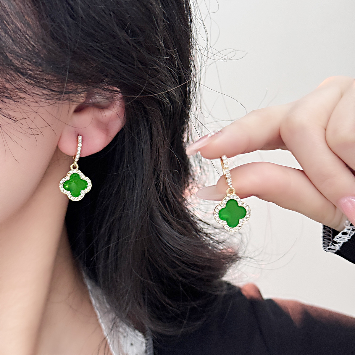 韓国の小さな香りの四つ葉のクローバーイヤリング 2024 新しいトレンディな絶妙なマイクロ象嵌フラッシュダイヤモンドイヤリングハイエンドイヤリング