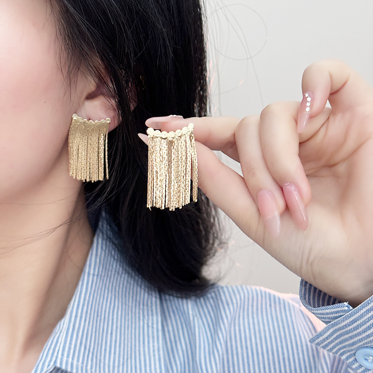 ヨーロッパとアメリカのトレンディなチェーンタッセルイヤリング、パーソナライズされたクールなスタイル、ファッショナブルなライトラグジュアリー、ハイエンド、女性用のインターネットセレブのホットスタイルイヤリング