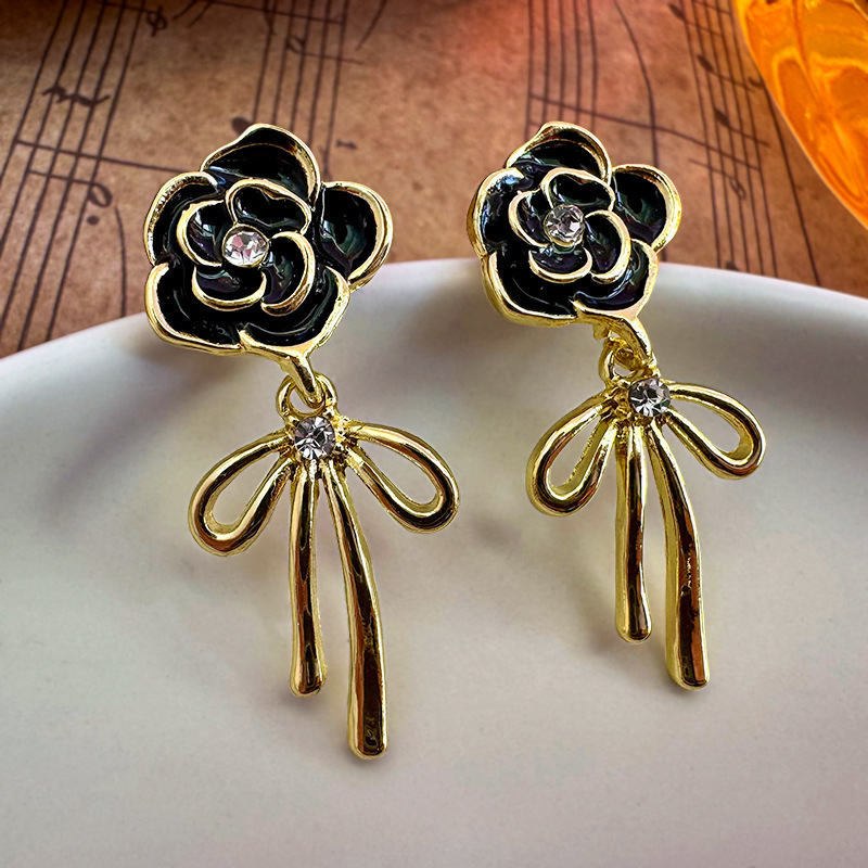 椿リボンイヤリング 2024 新しい気質ハイエンドイヤリングフレンチレトロイヤリングイヤークリップピアスなし