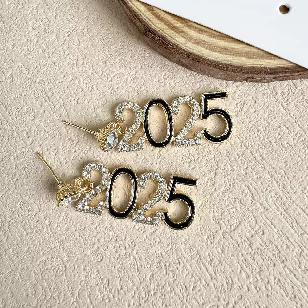 ファッショナブルな新しい黒と白のダイヤモンドがちりばめられたデジタルイヤリング、ハイエンドのニッチでユニークなデザイン、多用途で気質のあるパーソナライズされたペンダントイヤリング
