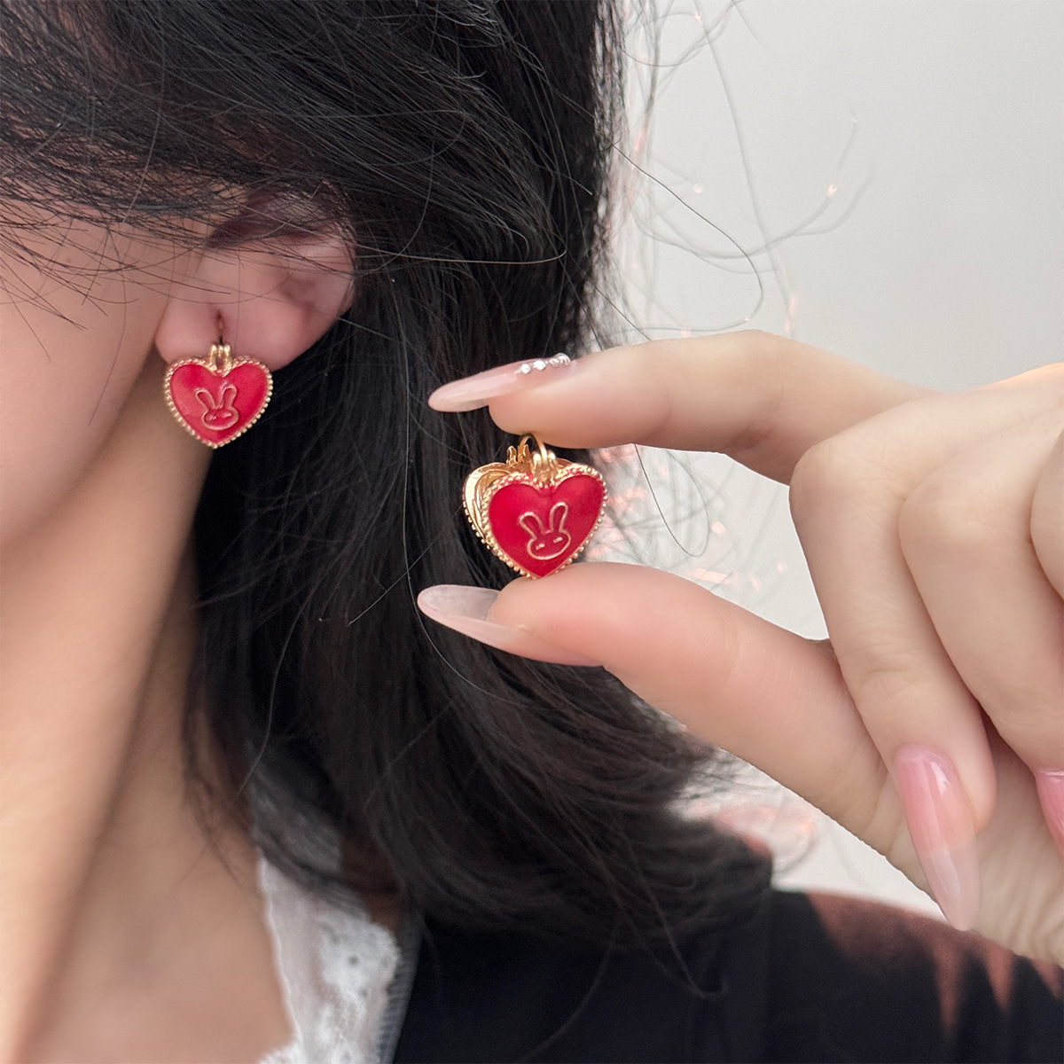 ニッチインズシンプルラブイヤリングカラフルなオイルドロップハートイヤリングジュエリーレトロアクセサリー多用途イヤリング