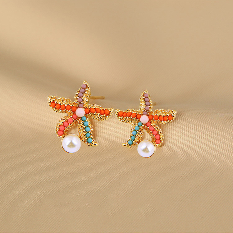 女性用の小さな新鮮でファッショナブルでシンプルなイヤリング、レトロなカラフルなヒトデの葉、キャンディーカラーのイヤリング、ホリデースタイルのイヤリング