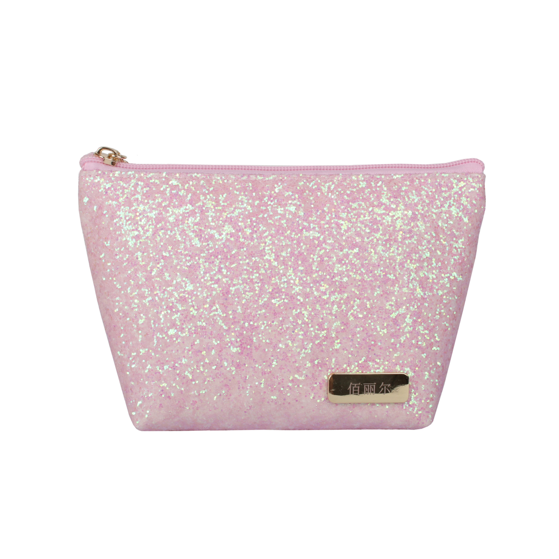 様々な新型化粧バッグファッションフラッシュpu収納バッグをカスタマイズして外出し、小銭入れ付き洗面バッグを持っている