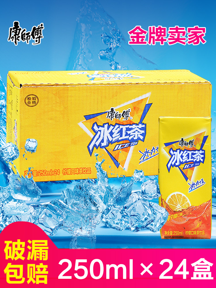 アイスティーの箱に入っている康師傅250ml * 24箱に夏の爽やかなレモン味のジュース飲料が入っています