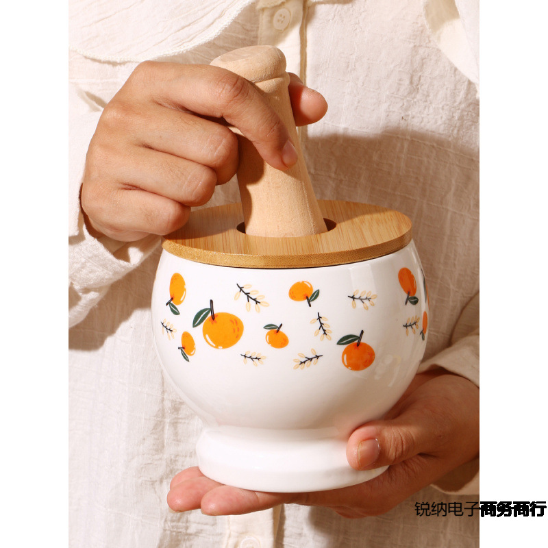 レトロな厚みのあるガーリックミル、蓋付き手押しガーリックミル、蓋付き業務用ねじ込み研削磁器ジャー